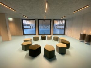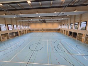Sportarten: Ballspiele, insbesondere Handball, Volleyball, Basketball, Badminton, Gymnastik. Mehrzwecknutzung möglich